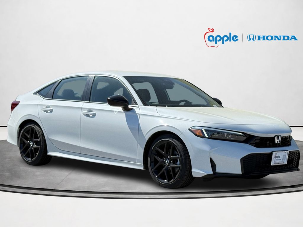 Platinum White 2026 Honda Civic Sport FWD CVT 2.0L I4 DOHC 16V Blk Clth Artificial Leather.