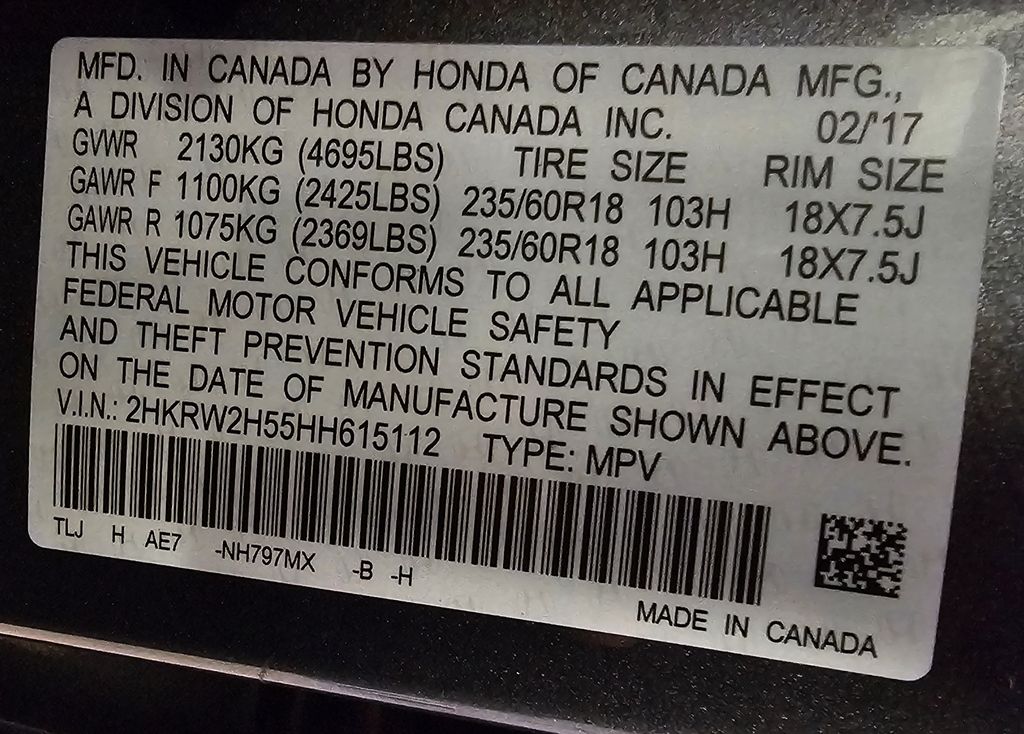 Gunmetal Metallic 2017 Honda CR-V EX AWD CVT 1.5L I4 DOHC 16V CLEAN CARFAX, CARFAX ONE OWNER, CARFAX NO ACCIDENTS, BLUETOOTH, BACK-UP CAMERA, AWD.