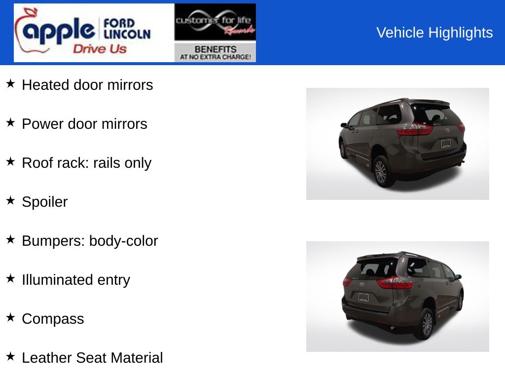 ABS brakes, Alloy wheels, Bumpers: body-color, Compass, Electronic Stability Control, Front dual zone A/C, Heated door mirrors, Heated Front Bucket Seats, Heated front seats, Illuminated entry, Leather Seat Material, Low tire pressure warning, Power door mirrors, Power Liftgate, Power moonroof, Remote keyless entry, Roof rack: rails only, Spoiler, Traction control.
