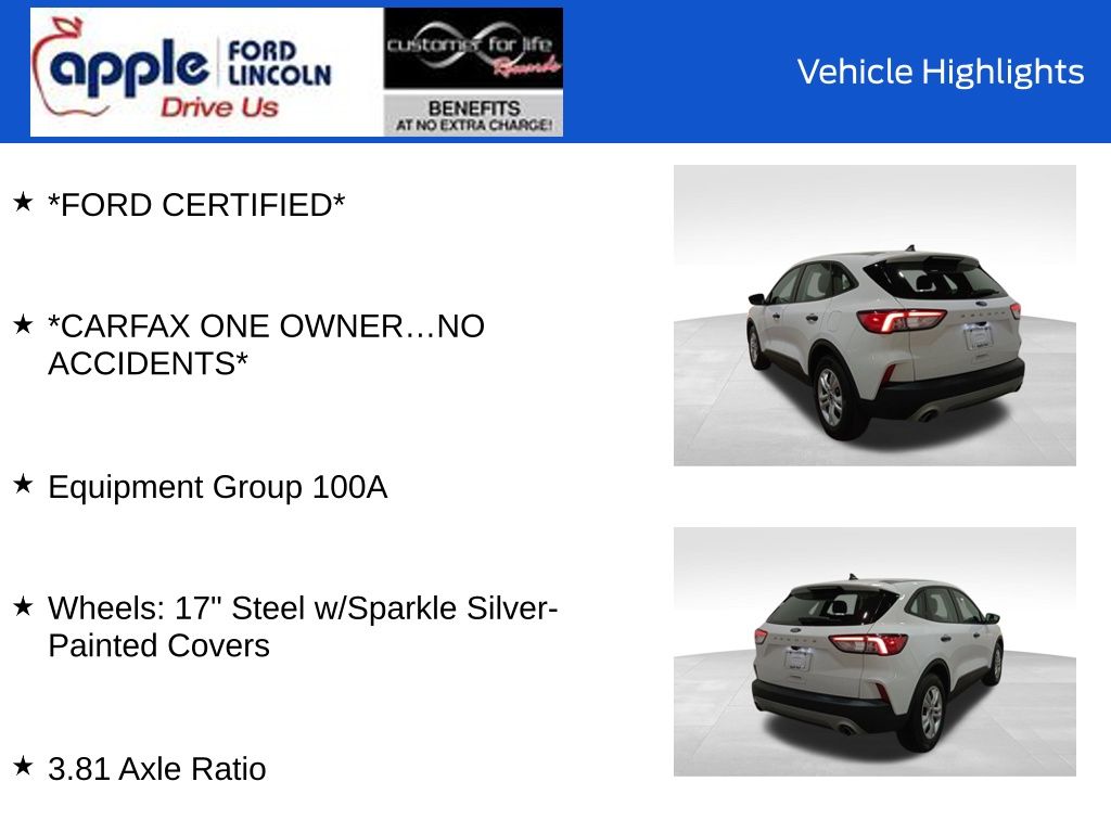 As a Ford Certified Pre-Owned vehicle, this Escape S has undergone a rigorous 172-point inspection and comes with a comprehensive warranty, giving you the assurance of quality and reliability. With low mileage and a clean CARFAX report, this is an opportunity to own a virtually new vehicle at a fraction of the cost.